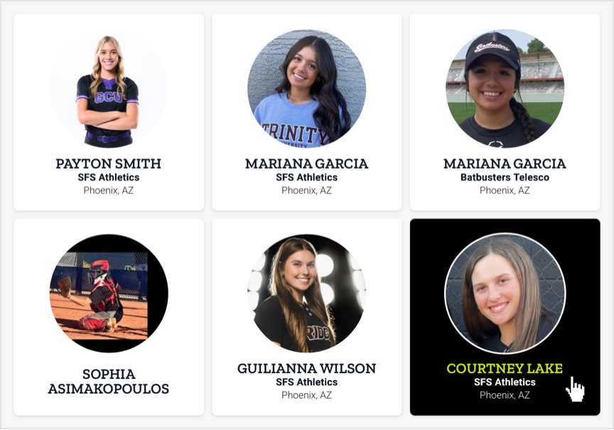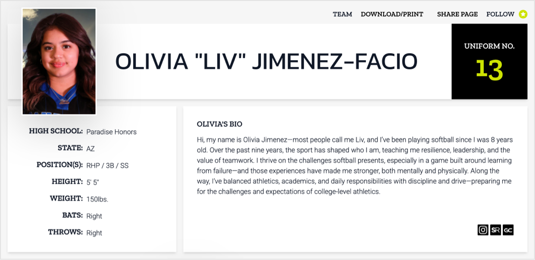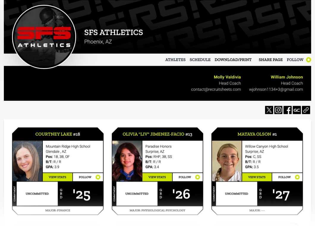 Team and athlete profiles are created instantly in a polished, college coach–approved format—no design skills needed.