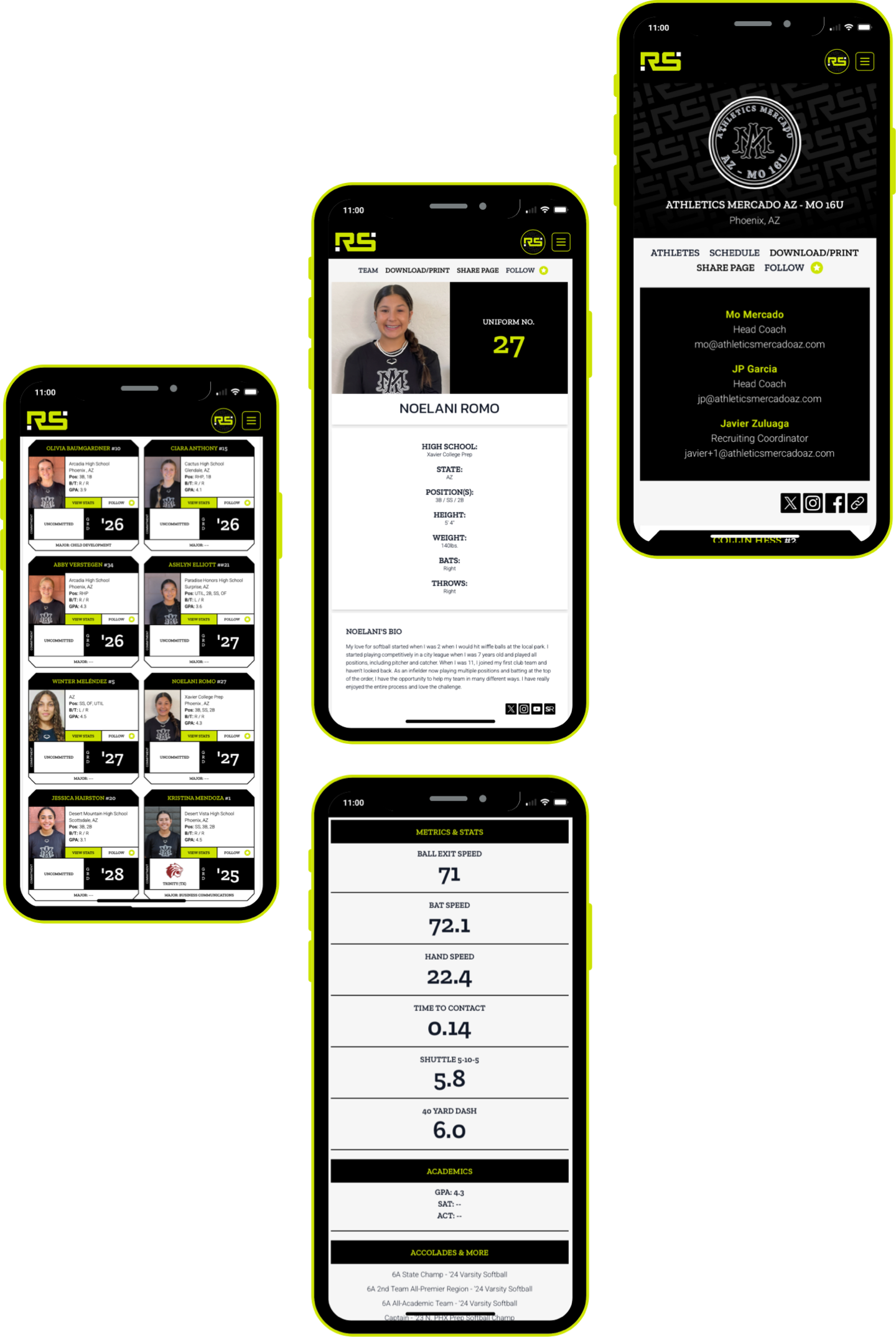 We took real input from college coaches and built profiles the way they want to see them. You just enter your roster—we instantly generate polished, uniform profiles that are ready to scan, link, or print.